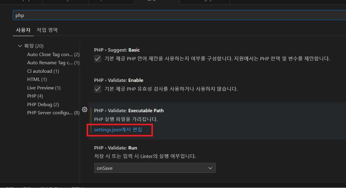 php를 설치했을 때 저장한 경로를 입력합니다.(xampp가 아닌 php설치입니다.)
