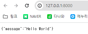 따라서 127.0.0.1:8000을 주소창에 입력하면 아래와 같이 나타나는것을 볼 수 있습니다.