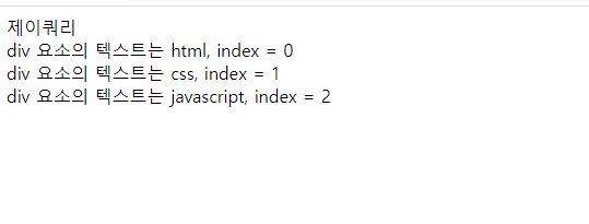 return "div 요소의 텍스트는 "+text+", index = "+index;