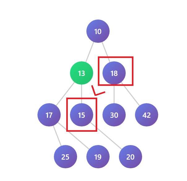 예를 들면 부모노드와 같은 높이의 다른 노드를 삼촌노드라고 했을 때 자식노드가 삼촌노드보다는 무조건 크거나 작지는 않다는 것입니다. 그림을 확인해보면 아래와 같습니다.