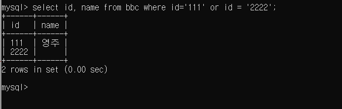 ※특정 데이터값만 찾고 싶다면 select 칼럼명1,칼럼명2,.. form 테이블명 where 조건;으로 찾을 수 있다.