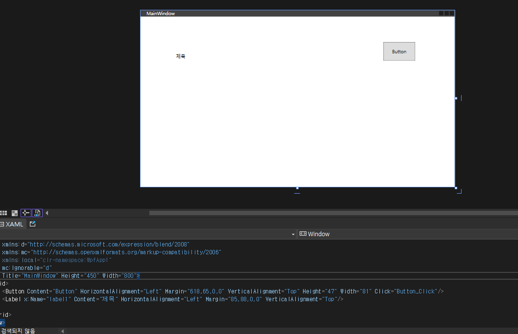 컨트롤이 추가될 때마다 자동으로 xaml 내용이 생성됩니다.