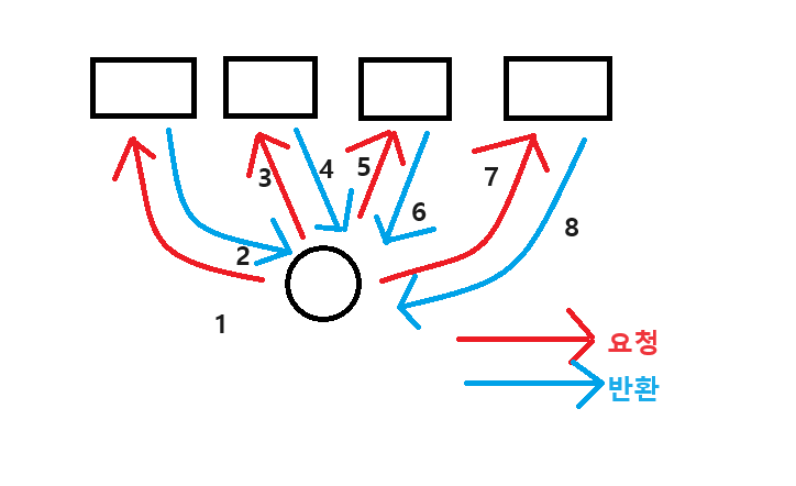 일반적으로 코드는 동기적으로 실행됩니다. 동기적으로 실행된다는 말은 아래 그림처럼 요청 후 반환받은 후 다음을 실행한다는 뜻입니다.