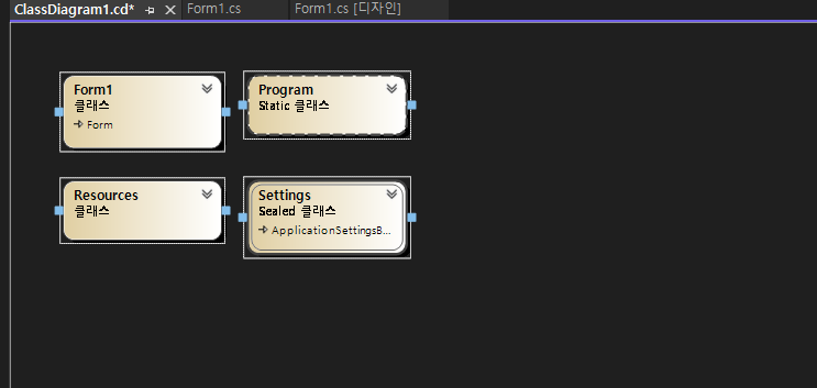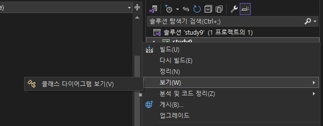 솔루션 탐색기에서 프로젝트 오른쪽 클릭 → 보기 → 클래스 다이어그램 보기를 클릭합니다.