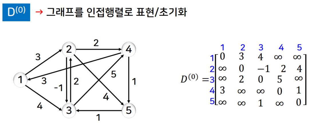 플로이드 알고리즘은 인접행렬 표현을 활용합니다.