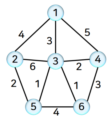 정점 1,3,5의 간선 중 선택되지 않는 간선에서 가중치가 가장 낮은 것은 3-6이므로 정점 6을 선택합니다.