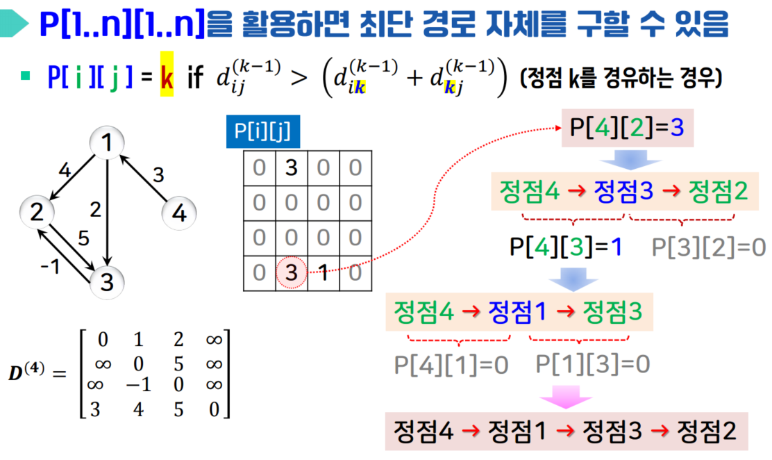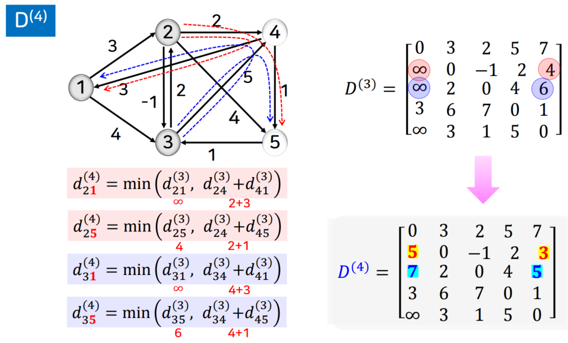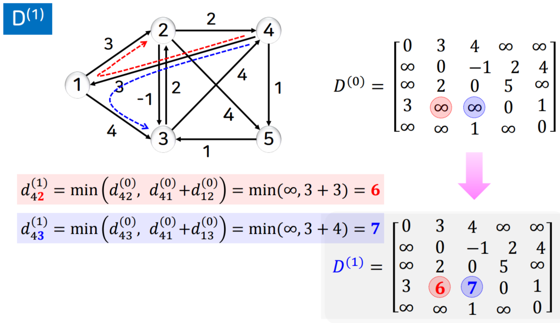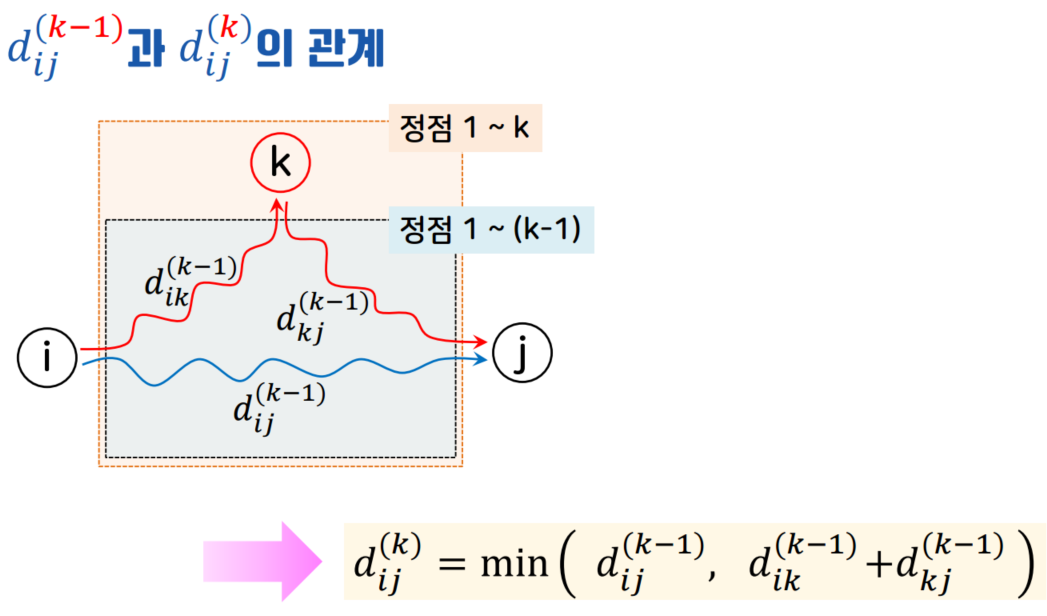 if (D[i][j] > D[i][k] + D[k][j] ) // 경유하는 경우