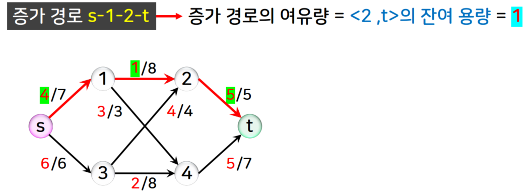 따라서 소스에서 나가는 값인 s-1,s-3의 합인 6+6 = 12 그리고 싱크로 들어오는 값인 2-t, 4-t의 합인 5+7=12가 됩니다.