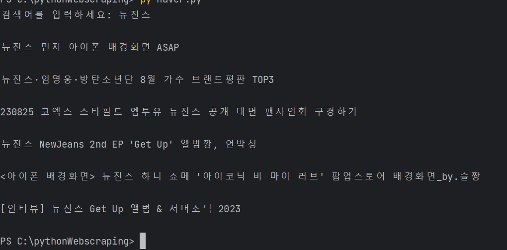 naver.py로 파이썬 파일을 만들어 아래 코드를 입력합니다.