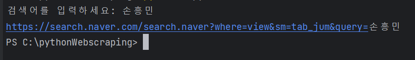 url을 전부 복사해서 크롬창의 url에 붙여넣기하면 view탭의 검색내용은 손흥민으로 가는 것을 볼 수 있습니다.