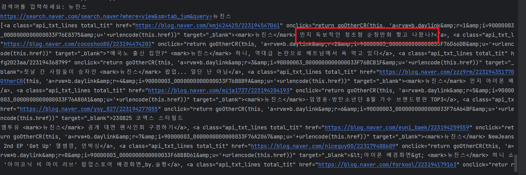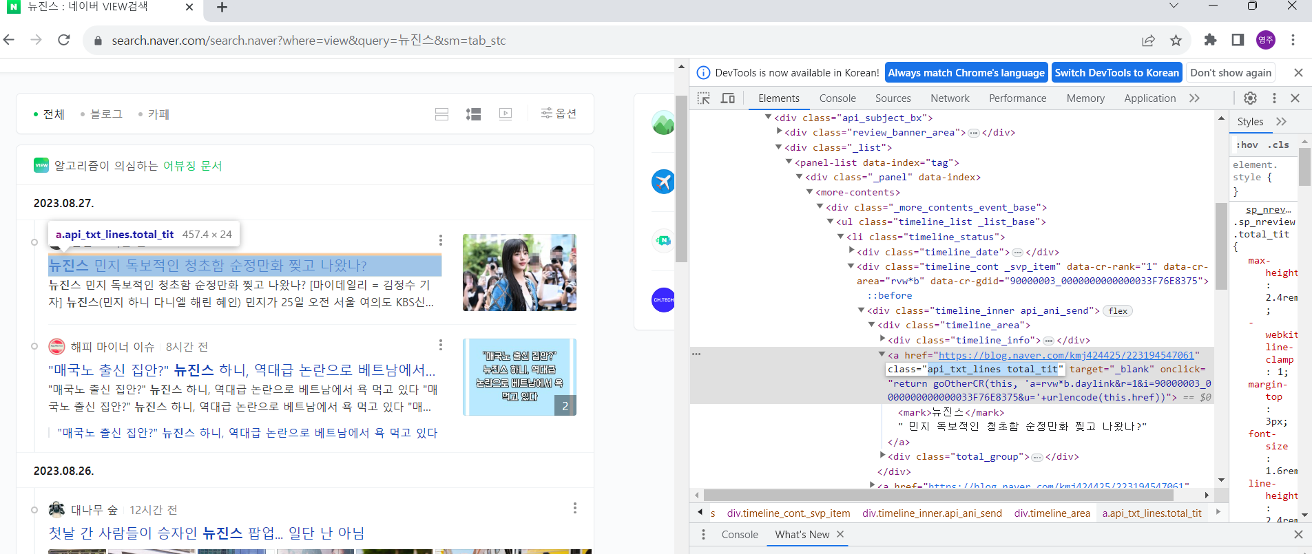 뉴진스를 검색해서 개발자 코드를 열어보시면 제목부분에 아래와 같은 클래스로 되어있는 것을 볼 수 있습니다.