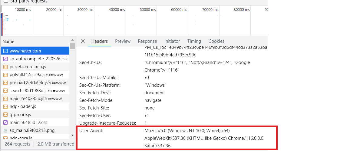 위의 빨간색 네모박스의 User-Agent를 복사합니다.