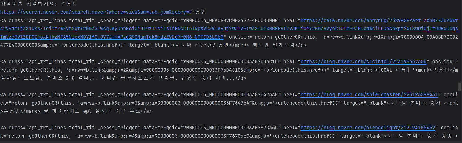해당 내용을 실행하겠습니다. 손흥민을 검색하니 아래와 같이 나타나는 것을 볼 수 있습니다.