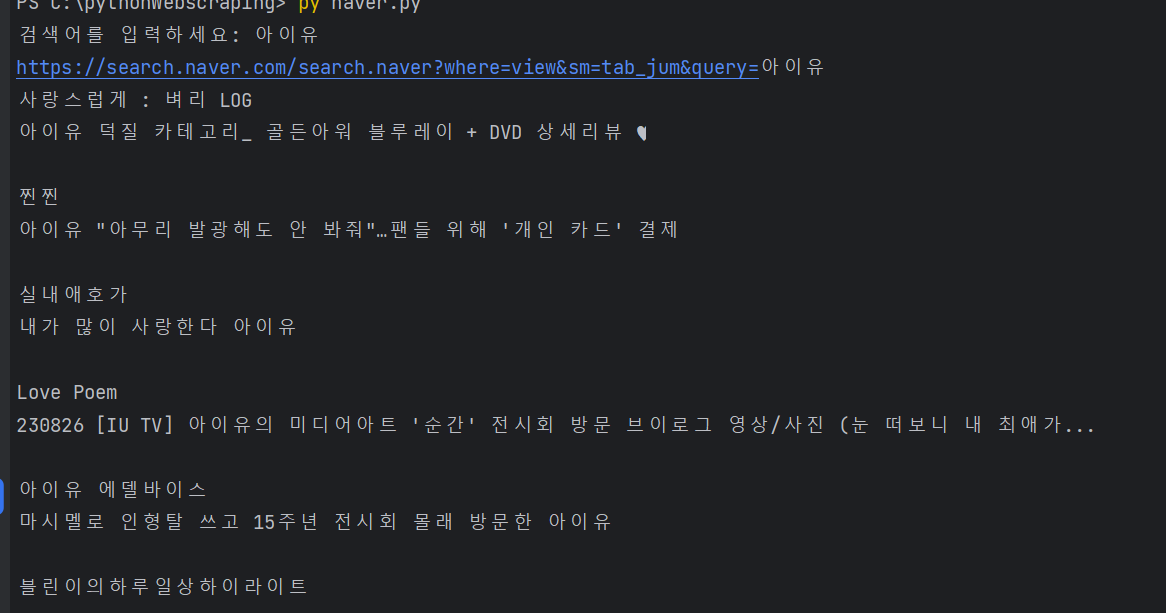 네이버의 view 탭에서 정보를 가져와보겠습니다